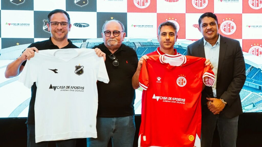 A Casa de Apostas Arena das Dunas anunciou, nesta quinta-feira (31), um importante investimento no futebol do Rio Grande do Norte. A empresa formalizou o patrocínio aos dois maiores clubes do estado, ABC e América, visando fortalecer as equipes na reta final dos campeonatos nacionais. A parceria, que já está em vigor e se estenderá até o final do ano, foi celebrada em um evento com a presença de figuras importantes do esporte potiguar. Ricardo Ferreira, diretor-presidente da Arena das Dunas, liderou o anúncio ao lado de Vitor Arteiro (CEO da SAF do América), Luiz Eduardo Machado Pereira (presidente do ABC) e José Vanildo (presidente da FNF e vice-presidente da CBF). O acordo prevê um investimento financeiro significativo nos clubes, além da exposição da marca da Casa de Apostas Arena das Dunas na parte frontal das camisas de jogo de ambas as equipes. A iniciativa busca impulsionar o desempenho esportivo e a visibilidade dos times. “Acreditamos na força transformadora que o esporte pode exercer na vida das pessoas”, afirmou Ricardo Ferreira. “Nosso objetivo com a parceria é contribuir para fomentar o futebol no Rio Grande do Norte, além de incentivar a geração de investimentos na modalidade. Investir no esporte é investir no futuro”. Vale destacar que a Casa de Apostas Arena das Dunas já demonstra seu compromisso com o esporte potiguar através do patrocínio ao time de futebol feminino Sociedade Esportiva União desde 2024. O time participou da Série A3 do Campeonato Brasileiro e do Campeonato Potiguar em 2023, demonstrando o engajamento da empresa com o desenvolvimento esportivo em diversas modalidades. Fonte: http://agorarn.com.br