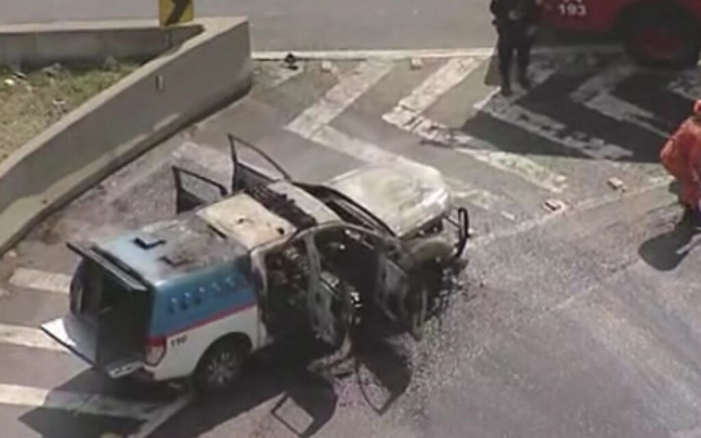 Viatura da PM em Chamas Interdita Faixas da Linha Amarela, Causando Congestionamento