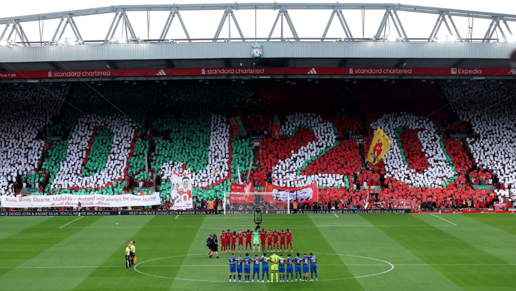 Liverpool presta emocionante tributo a Diogo Jota e André Silva em Anfield