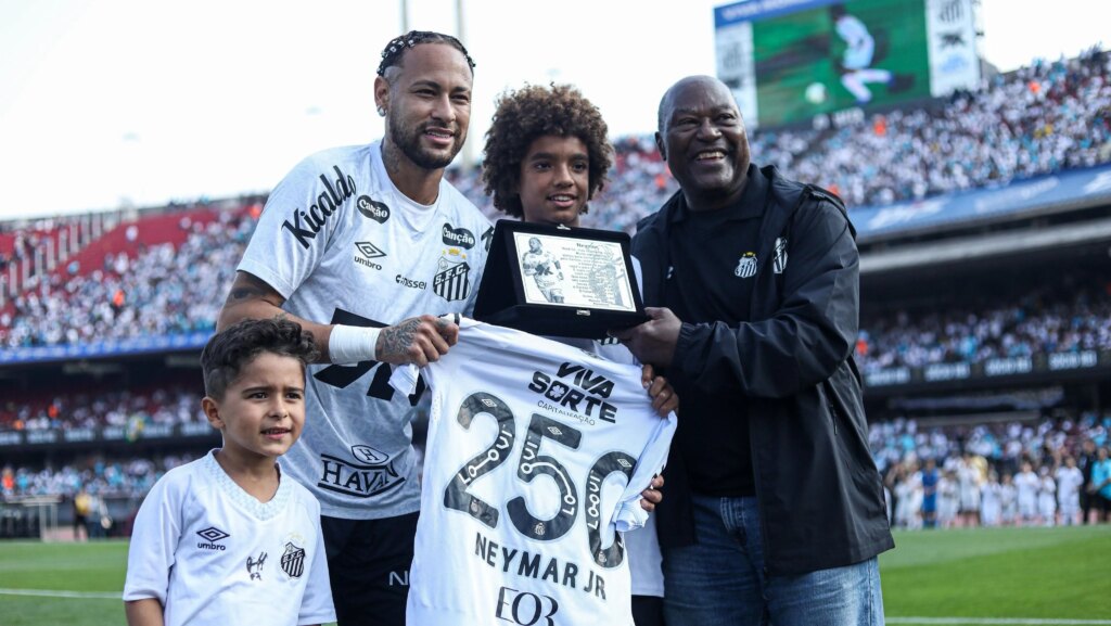 Neymar, o craque que ascendeu ao estrelato no Santos, recebeu uma calorosa homenagem na Vila Belmiro neste domingo (17). A celebração ocorreu antes da partida entre Santos e Vasco, marcando seus 250 jogos oficiais com a camisa do Peixe. O camisa 10, ídolo santista, foi ovacionado pela torcida e presenteado com honrarias. O jogo que concretizou a marca histórica foi a vitória do Santos por 1 a 0 sobre o Cruzeiro, em 10 de agosto, no Mineirão. A homenagem especial incluiu a entrega de uma camisa personalizada e uma placa comemorativa. Entregaram os presentes o ídolo eterno Edu, o jovem promissor da base Kauan Basile, o torcedor Bruninho, famoso por seu amor ao clube, e Davi Lucca, filho de Neymar. A trajetória de Neymar no Santos, iniciada em 2009 contra o Oeste, é repleta de títulos e momentos memoráveis. O jogador conquistou três Campeonatos Paulistas (2010, 2011 e 2012), a Copa do Brasil em 2010, a Libertadores da América em 2011 e a Recopa Sul-Americana em 2012. Esses feitos o consagraram como um dos maiores ídolos da história do clube. A homenagem a Neymar reflete a importância do jogador para o Santos e para o futebol brasileiro. “É uma honra celebrar um atleta que tanto contribuiu para a história do clube”, afirmou um representante do Santos durante a cerimônia. O legado de Neymar na Vila Belmiro permanece vivo, inspirando novas gerações de jogadores e torcedores. Fonte: http://www.cnnbrasil.com.br