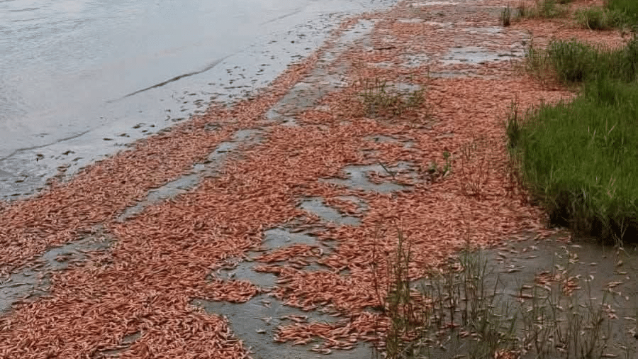 Em Igaraçu do Tietê, no interior paulista, milhares de camarões morreram devido à baixa concentração de oxigênio no rio.