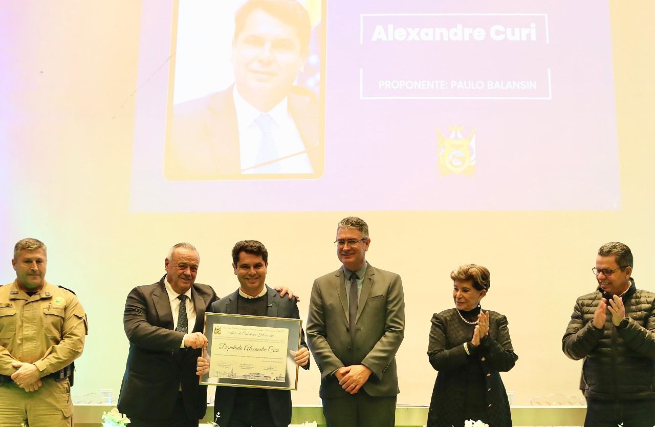 O deputado estadual Alexandre Curi (PSD), presidente da Assembleia Legislativa do Paraná (ALEP), foi homenageado na última quarta-feira (30) com o título de Cidadão Honorário de Ponta Grossa. A honraria foi aprovada pela Câmara Municipal, por iniciativa do vereador Paulo Balansin (União Brasil).