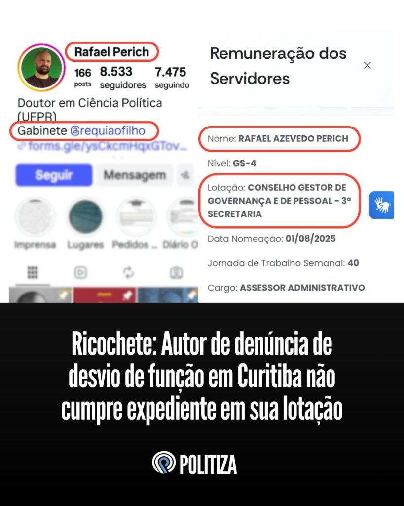 A política tem dessas ironias que dispensam comentário — mas rendem coluna. O episódio envolvendo Rafael Azevedo Perich é um bom exemplo. Apresentado como voz vigilante ao denunciar uma suposta situação de desvio de função na Prefeitura de Curitiba, ele acabou exposto por um detalhe nada trivial: o crachá que carrega não é exatamente o que diz portar. Segundo sua conta no Instagram, se apresenta como integrante do gabinete do deputado Requião Filho, mas consta, de fato – conforme dados da ALEP referente a janeiro de 2026, como servidor da estrutura administrativa da Assembleia Legislativa. A diferença pode parecer burocrática, mas politicamente é enorme. Afinal, quem se coloca na linha de frente de denúncias costuma ser cobrado pelo mesmo rigor que exige dos outros. O episódio produz um efeito clássico da política local: o denunciante vira pauta. Não pelo conteúdo da denúncia em si, mas pela coerência entre discurso e posição funcional. Em tempos de redes sociais e militância permanente, a fronteira entre atuação política, institucional e narrativa pessoal é cada vez mais sensível. No fim, o chamado “tiro certeiro” acabou com ricochete. E deixou no ar a pergunta que Brasília, Curitiba e qualquer praça política conhecem bem: quem fiscaliza o fiscal quando o discurso não bate com o cargo?