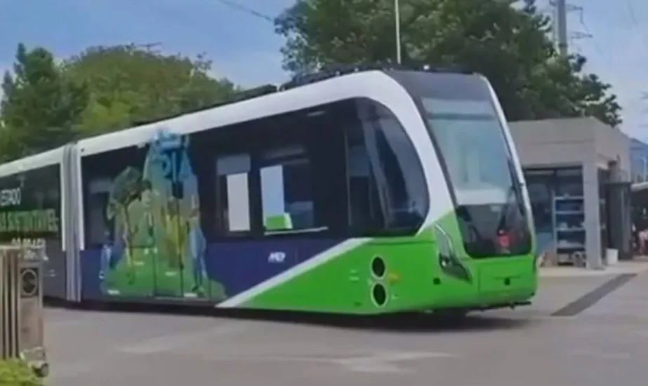 Fabricado na China, o modelo opera com tecnologia DRT (Digital Rail Transit), um sistema de indução magnética que permite o deslocamento sobre trilhos virtuais demarcados no asfalto, algo semelhante a um metrô de superfície. O veículo tem três vagões, é 100% elétrico, alcança até 70 km/h e tem vida útil estimada em 30 anos.
