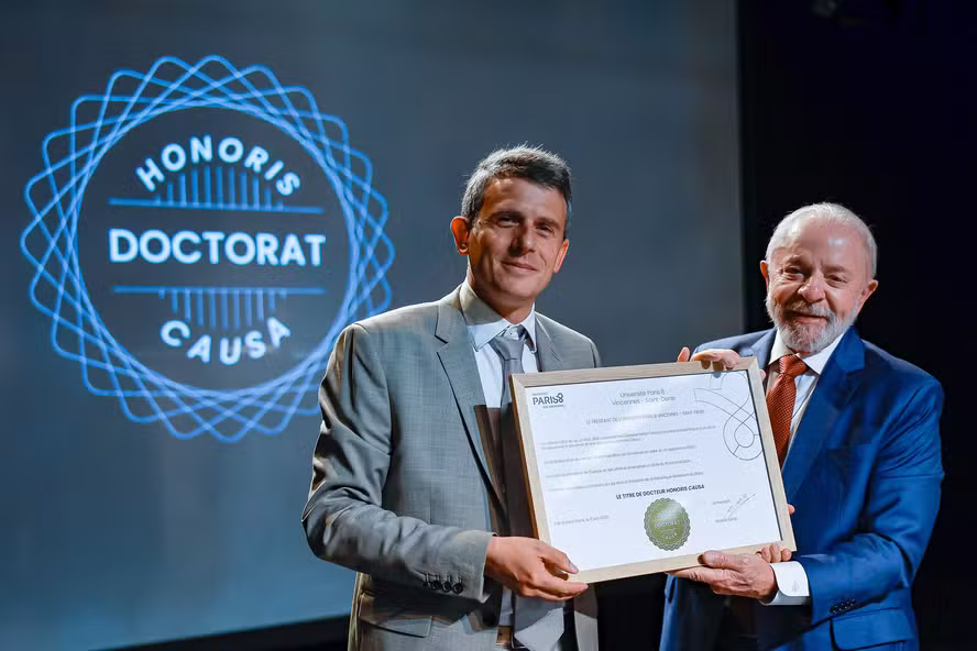 O presidente Luiz Inácio Lula da Silva (PT) recebeu nesta sexta-feira (6) o título de Doutor Honoris Causa da Universidade Paris 8. A cerimônia marcou o início do segundo dia da visita oficial de uma semana à França. A agenda também inclui encontros com o presidente francês, Emmanuel Macron, e eventos bilaterais de interesse econômico e sanitário.